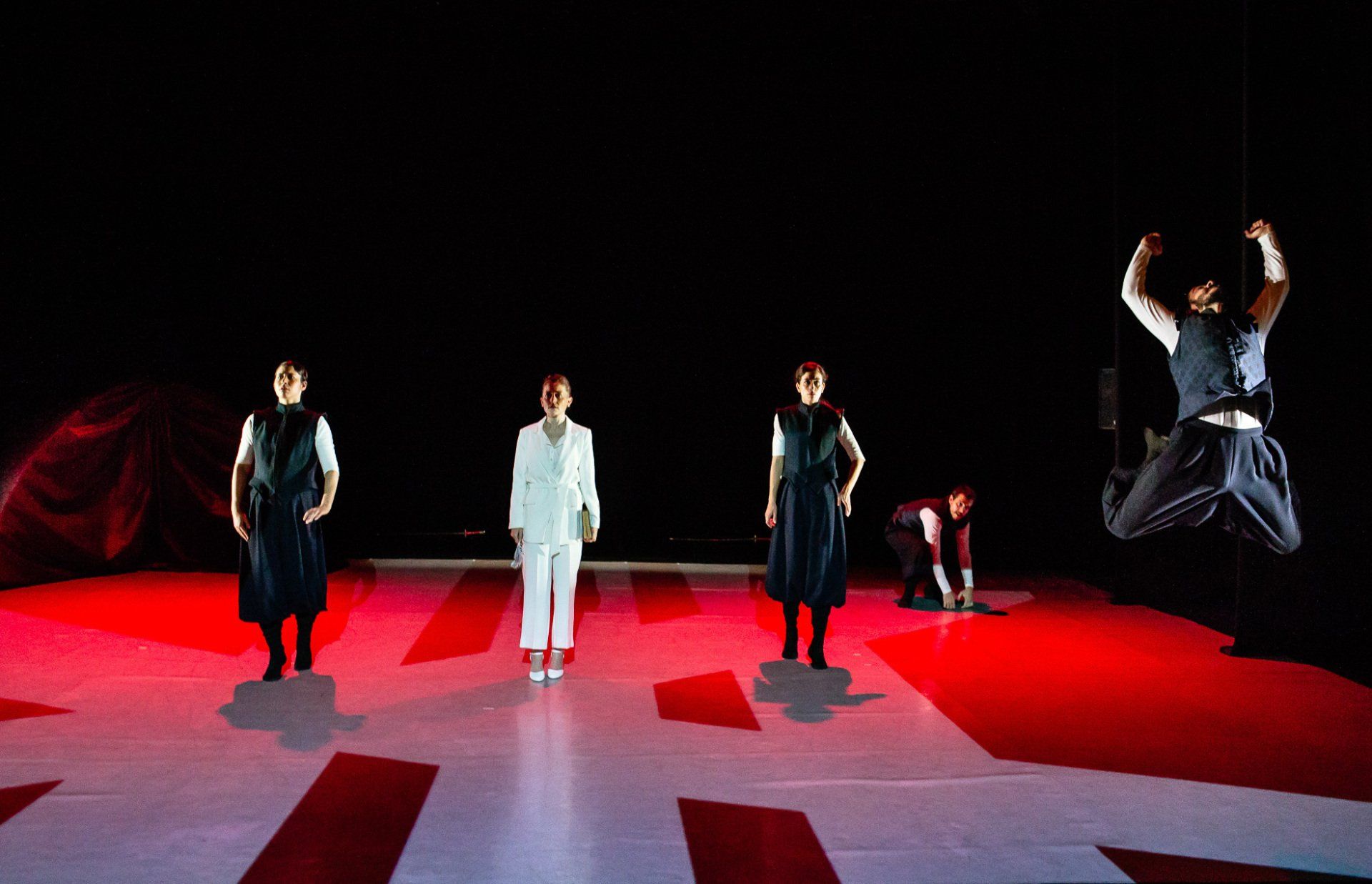 Intérpretes en escena: Jorge Barrantes, Lara Martorán, Guadalupe Fernández, Sergio Barquilla, Chloé Bird