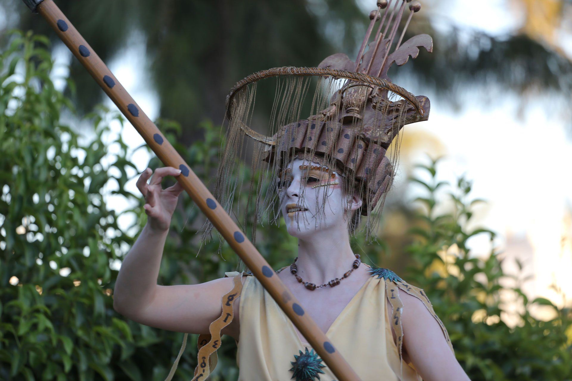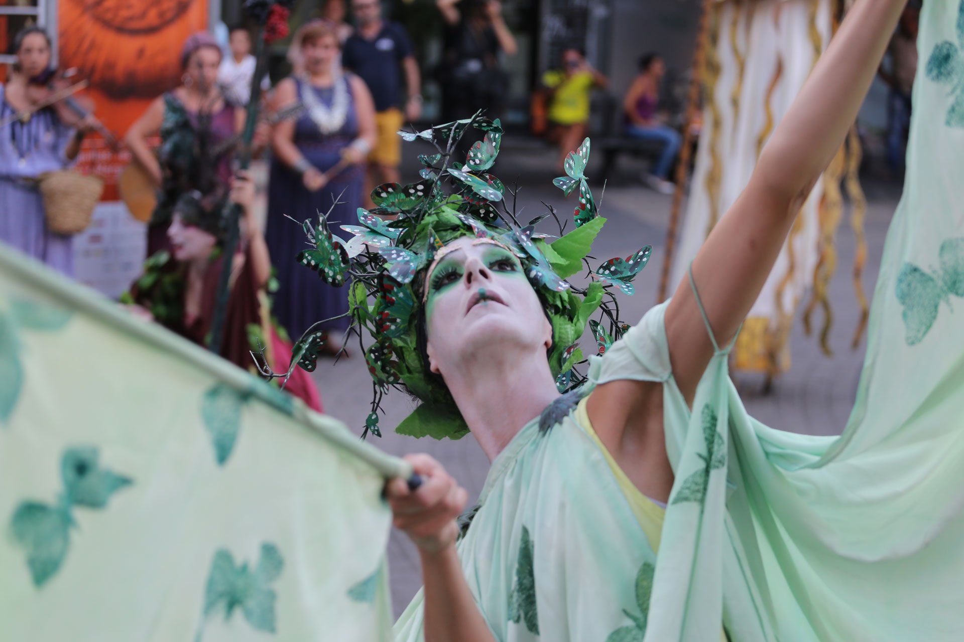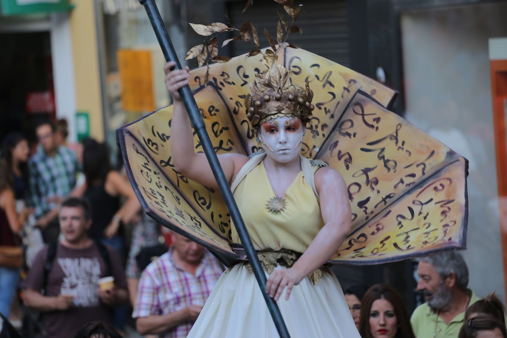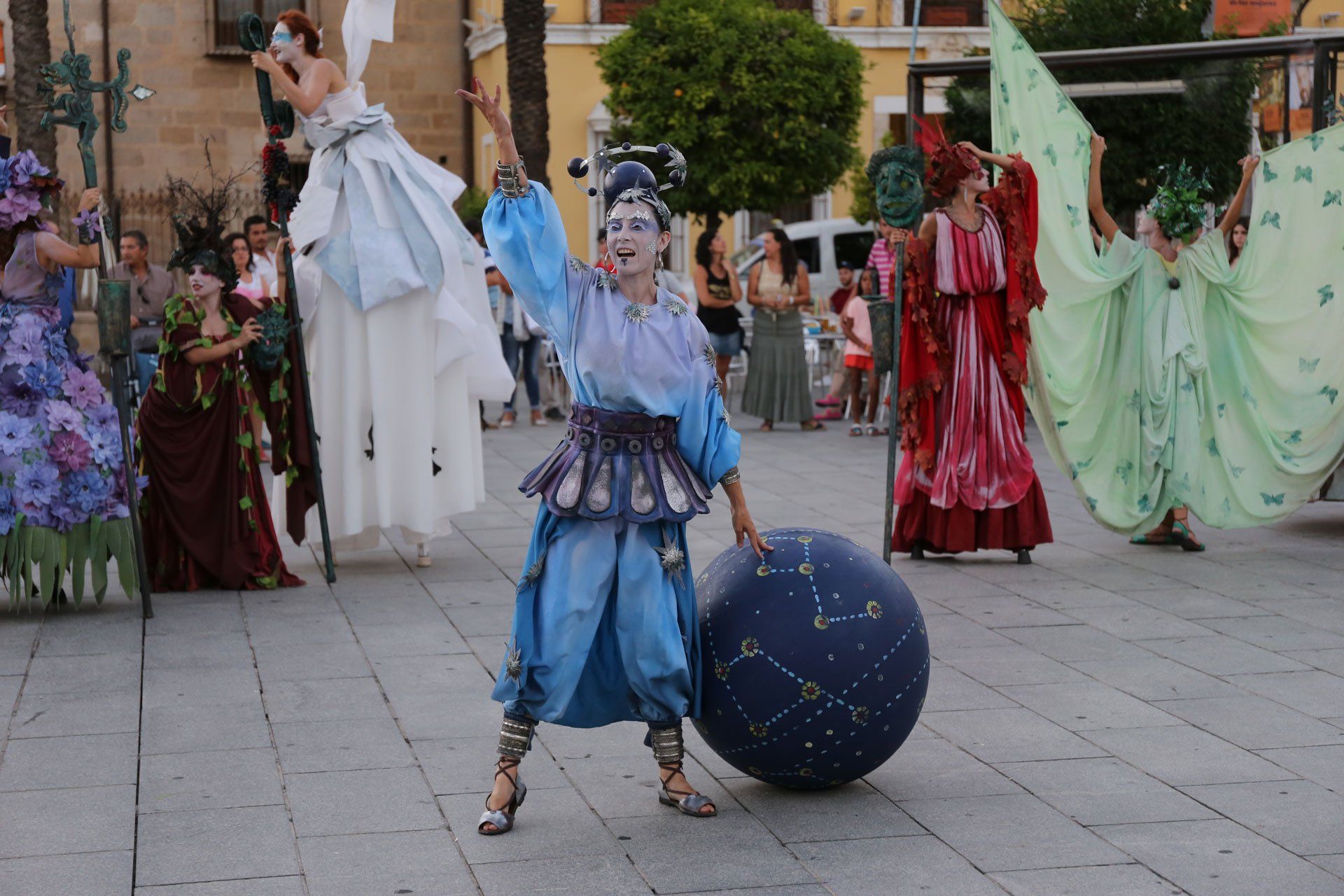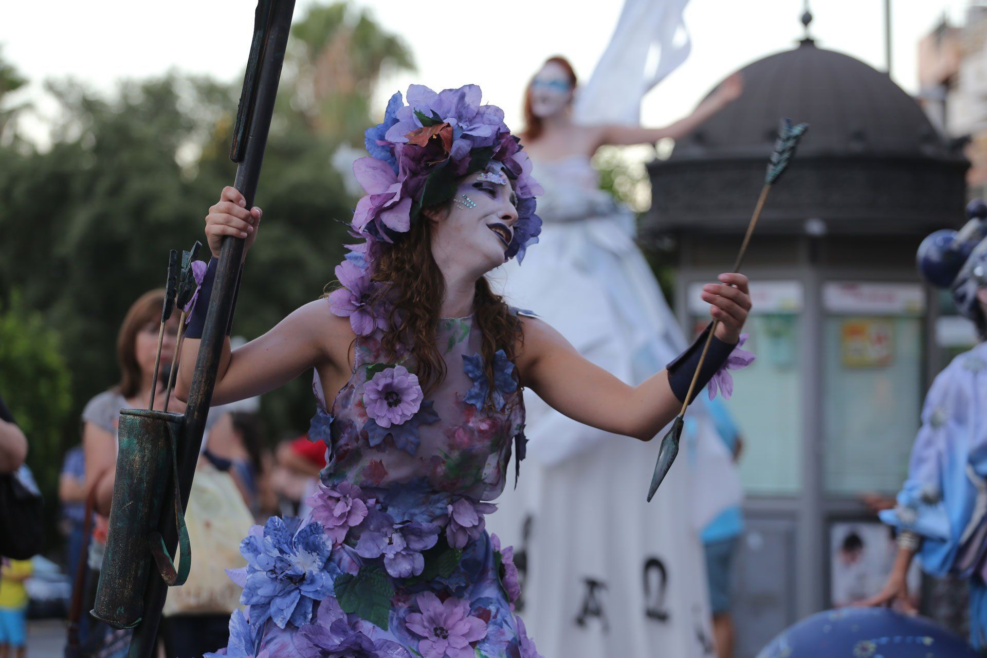 Musas, divinidades femeninas que presiden las artes y las ciencias e inspiran a filósofos y poetas. Nueve musas, nacidas de nueve noches seguidas de amor entre Zeus y Mnemósine. Las musas, nietas de Urano, el Cielo, y Gea, la Tierra, serán las protagonistas de nuestro pasacalle.